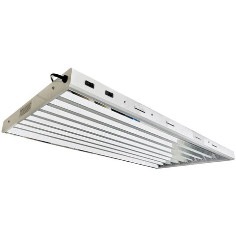 The UltraGrow T5 Fluorescent Fixtures are one of the most reliable and cost-efficient HO systems on the market. They are ideal for all growing situations including microgreen, seeding, cloning and the vegetative stage. These fixtures produce optimal efficiency and high lumen output using our Plantmax HO Lamps. The UltraGROW Feather T5 Fixtures are a lighter, more cost friendly version of the regular T5 fixtures. If space is limited, the T5 strip would be a great solution offering the same high lumen output, but in a much more compact size. 8' ground power cord. Power Switches: 2. Volts: 120. Amps: 3.6A. Daisy chain capable: 3. HO lamps: 8 included. Wattage of lamp: 54W. Total Wattage: 432W. Initial lumens of lamp: 5,000. CCT: 6,500K. ETL Listed.