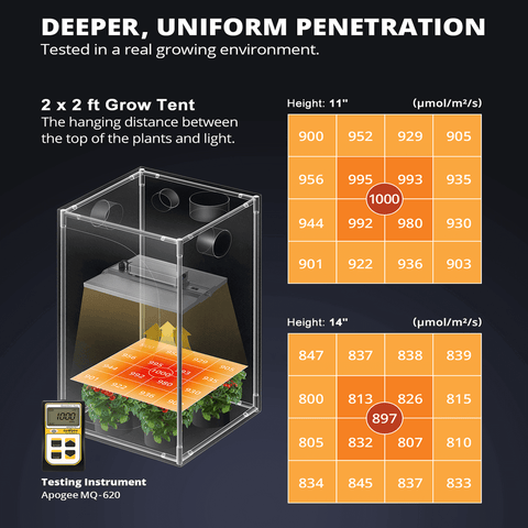 Coverage Area: Perfect for 3x3 ft vegetation coverage and 2x2 ft flowering coverage. Please note, for optimal performance it is important to adjust the brightness accordingly.