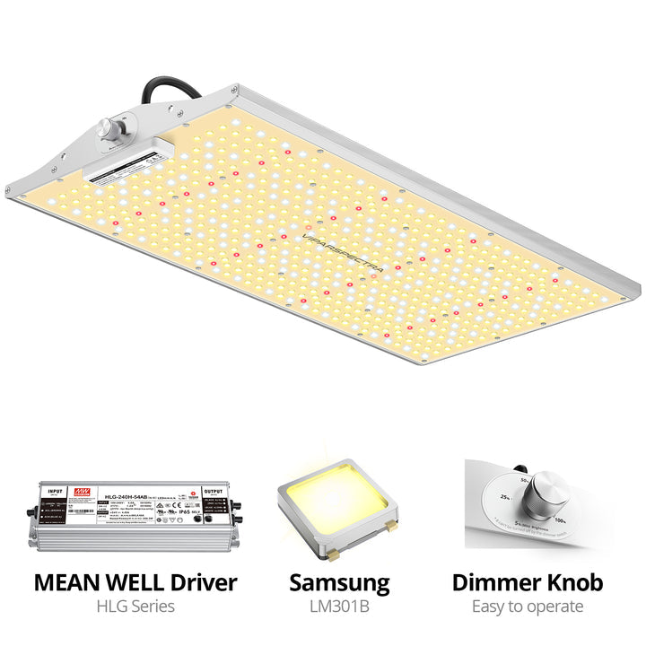 【Mean Well Driver】240W Mean Well driver helps achieve high PAR output and longer lifespan. Boost yields and save electric costs.