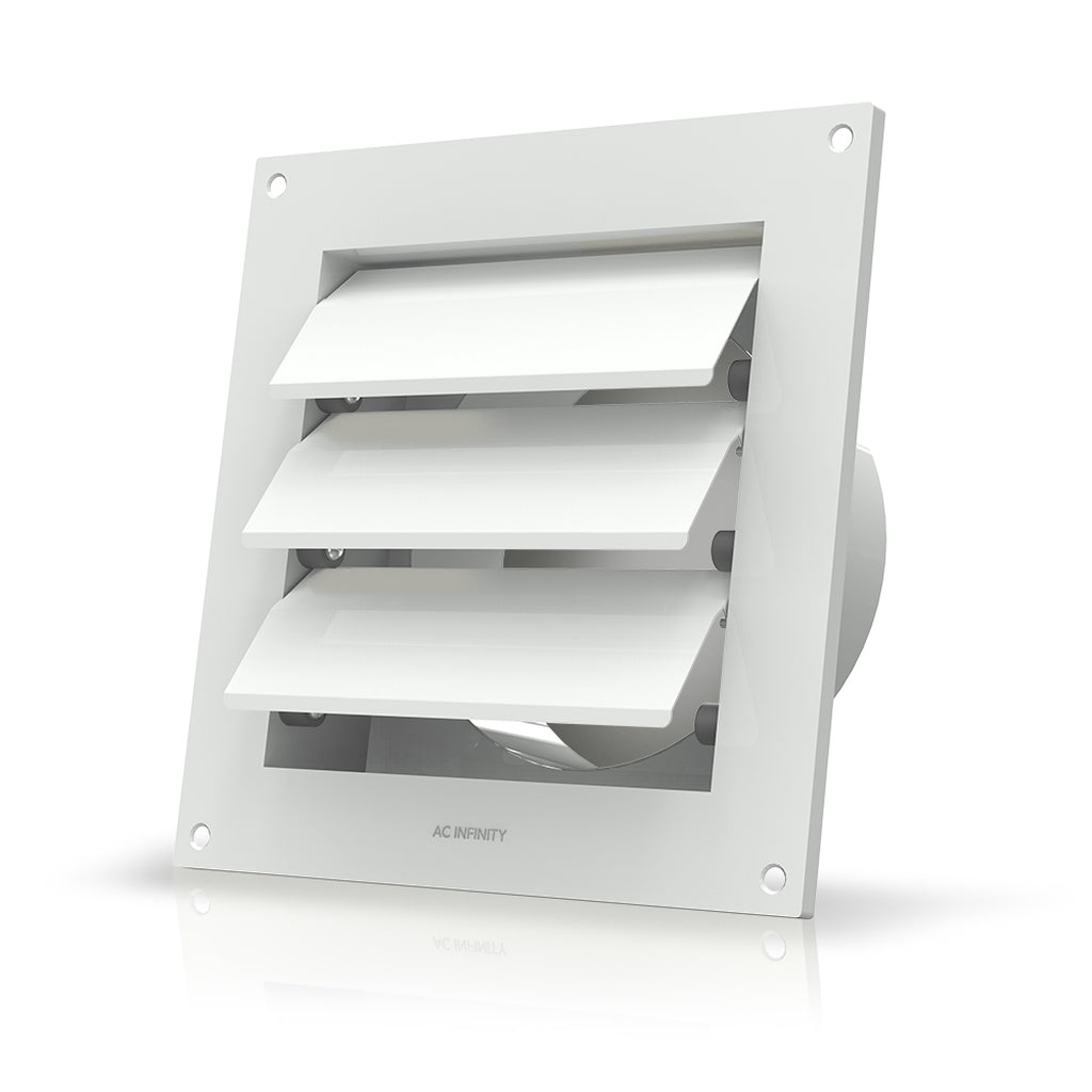 A wall-mounted shutter designed for use with grow rooms, dryers, attics, and other HVAC applications.