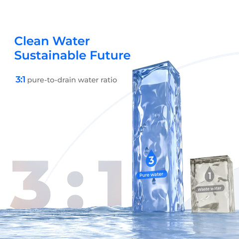 purified water dispensed by a RO system. For example, the 3:1 drain ratio means it uses