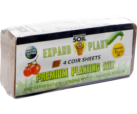 Patented, compressed .coir sheets formulated with a premium blend of coir, mycorrhizae, worm castings, water saving polymers, kelp, nutrients, silicon and TerraPro humus. 4 compressed coir sheets expand to 1 cu ft. Use what you need and save the rest for later!